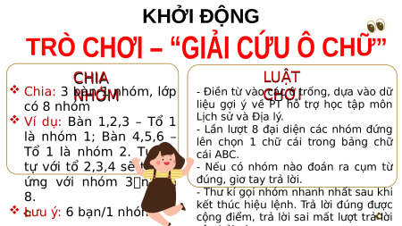 ĐẾN VỚI BÀI HỌC MỚI! KHỞI ĐỘNG CHIA LUẬT L Chia: 3 NHÓ bàn M 1 nhóm, lớp - Điền từ và C o HƠ Ccác I HƠ ô trống, dựa vào dữ có 8 nhóm
