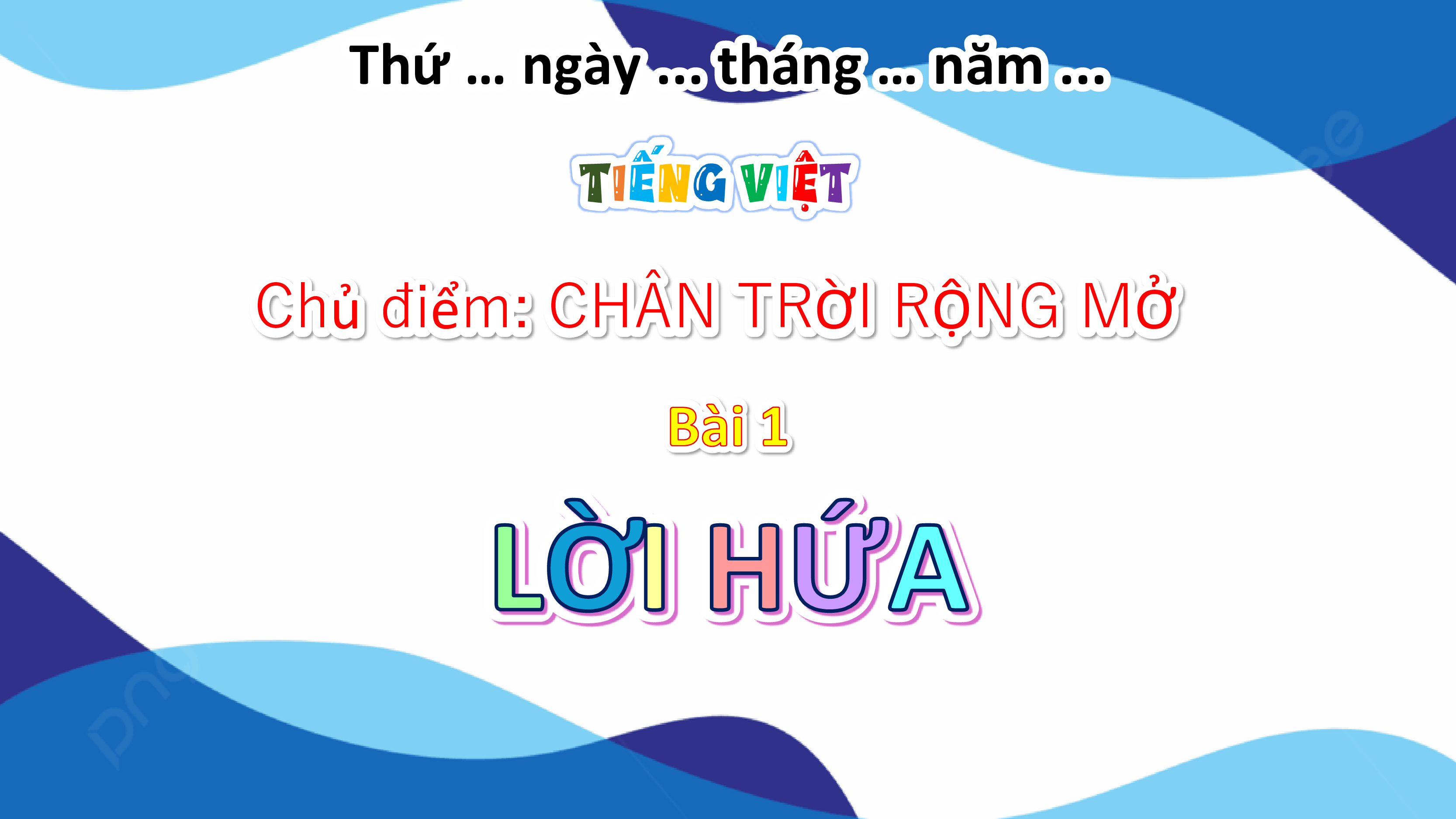 CHÂN TRỜI RỘNG MỞ www.9slide.vn Thứ … ngày ... thá ... ng tháng … năm … ... Chủ Ch điể đi m: CHÂN TR ểm: Ờ CHÂN TR I R Ờ Ộ I R NG M Ộ Ở NG M Bài 1 Bài LỜI HỨA LỜI HỨA www.9slide.vn YÊU CẦU CẦN ĐẠT YÊU CẦU CẦN ĐẠ