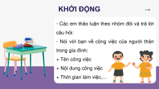 - Nói với bạn về công việc của người thân trong gia đình: + Tên công việc + Nội dung công việc + Thời gian làm việc,...