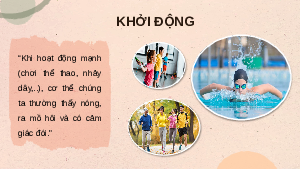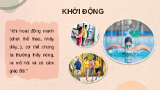 CÁC EM TỚI BÀI HỌC HÔM NAY! KHỞI ĐỘNG “Khi hoạt động mạnh (chơi thể thao, nhảy dây,..), cơ thể chúng ta thường thấy nóng, ra mồ hôi và có cảm giác đói.”