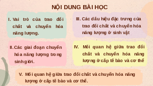 VÀ CHUYỂN HÓA NĂNG LƯỢNG Ở SINH VẬT. NỘI DUNG BÀI HỌC