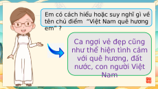 tên chủ điểm “Việt Nam quê hương em” ? Ca ngợi vẻ đẹp cũng