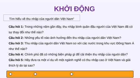 Câu hỏi 1: Trong những năm gần đây, thu nhập bình quân đầu người của Việt Nam đã có