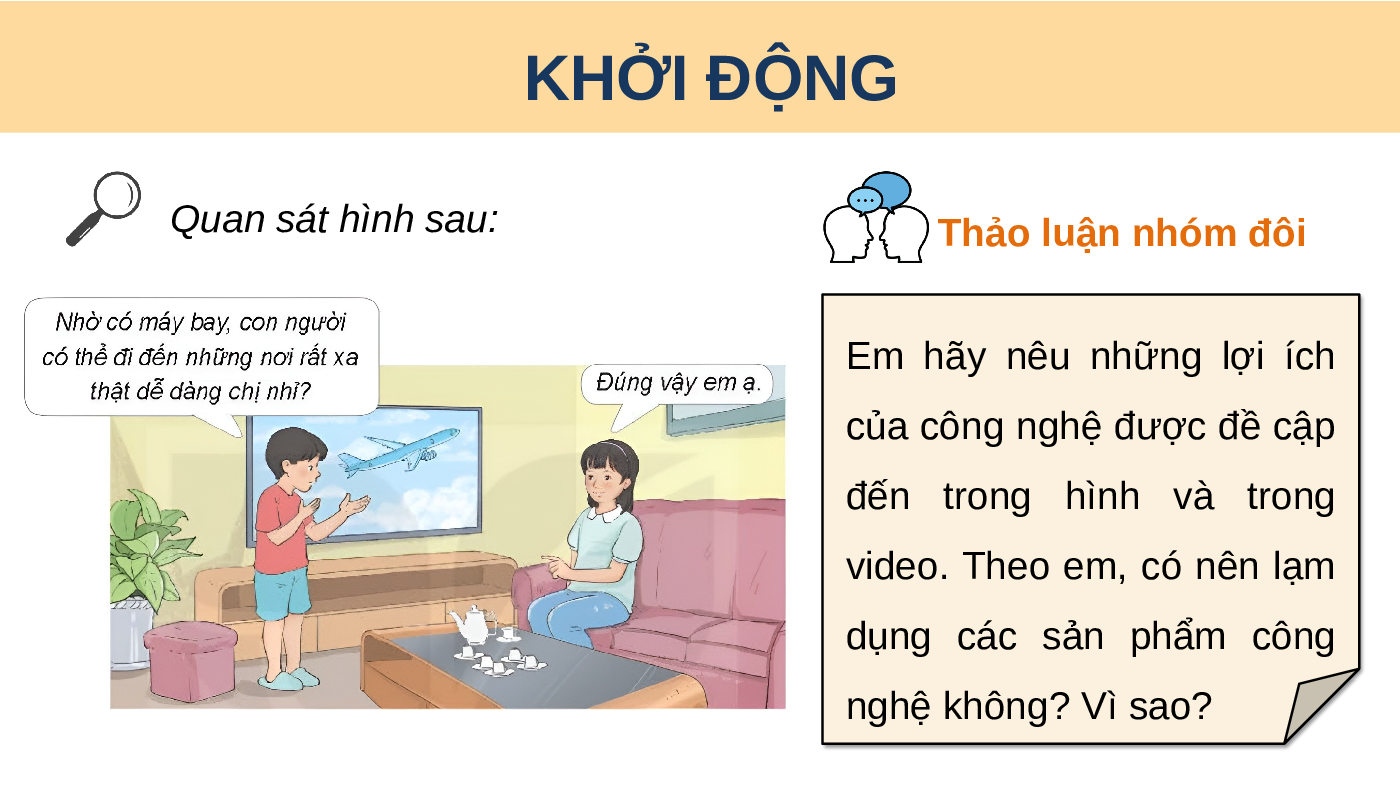 TIẾT HỌC MÔN CÔNG NGHỆ! Cả lớp theo dõi video sau đây KHỞI ĐỘNG Quan sát hình sau: