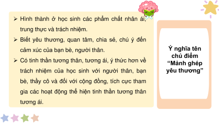 về tên chủ điểm “Mảnh ghép yêu thương”.