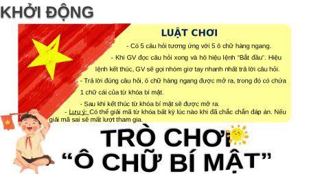 - Có 5 câu hỏi tương ứng với 5 ô chữ hàng ngang.