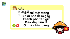 giải mã sai sẽ mất lượt tham gia. 1 V I N H 2 H Ò A B I N H 3 H U Ế 4 T Â Y N I N H S À I G Ò N 5 6 H À N Ộ I 7 C À M A U