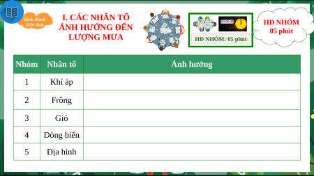 I. CÁC NHÂN TỐ ẢNH HƯỞNG ĐẾN LƯỢNG MƯA
