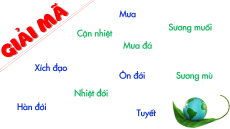 KHỞI ĐỘNG TRÒ CHƠI GIẢI MÃ GV gọi 10 GV đưa 10 dữ Mỗi HS sẽ xác Thời gian mỗi bạn HS tham liệu để HS xác định 1 dữ liệu dữ liệu: 5 gia trò chơi định đó là thời thuộc thời tiết tiết hay khí hậu tiếng đếm hay khí hậu Mưa MÃ Sương muối Cận nhiệt Mưa đá GIẢI Xích đạo Ôn đới Sương mù Nhiệt đới Hàn đới Tuyết Thời tiết Khí hậu MÃ Mưa Hàn đới GIẢI Tuyết Ôn đới Mưa đá Cận nhiệt Sương mù Nhiệt đới Sương muối Xích đạo BÀI 11: THỰC HÀNH