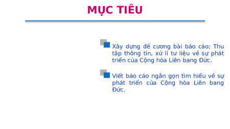 phát triển của Cộng hòa Liên bang Đức. 1. Xây dựng đề cương bài báo cáo 2. VIẾT BÁO CAO