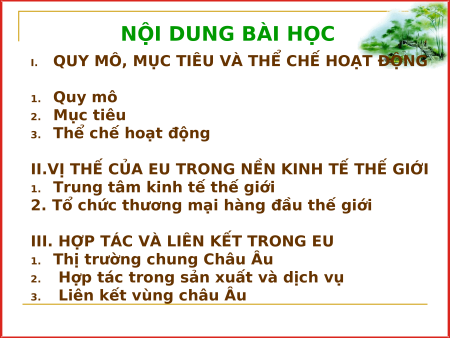 Giáo án Powerpoint Bài 10 Địa lí 11 Chân trời sáng tạo: Liên minh châu Âu