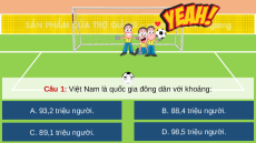 Câu 1: Việt Nam là quốc gia đông dân với khoảng: A. 93,2 triệu người. B. 88,4 triệu người. C. 89,1 triệu người. D. 98,5 triệu người.