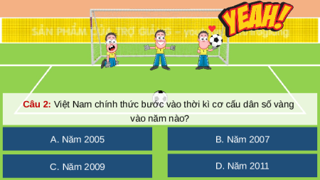 Câu 2: Việt Nam chính thức bước vào thời kì cơ cấu dân số vàng vào năm nào? A. Năm 2005 B. Năm 2007 C. Năm 2009 D. Năm 2011