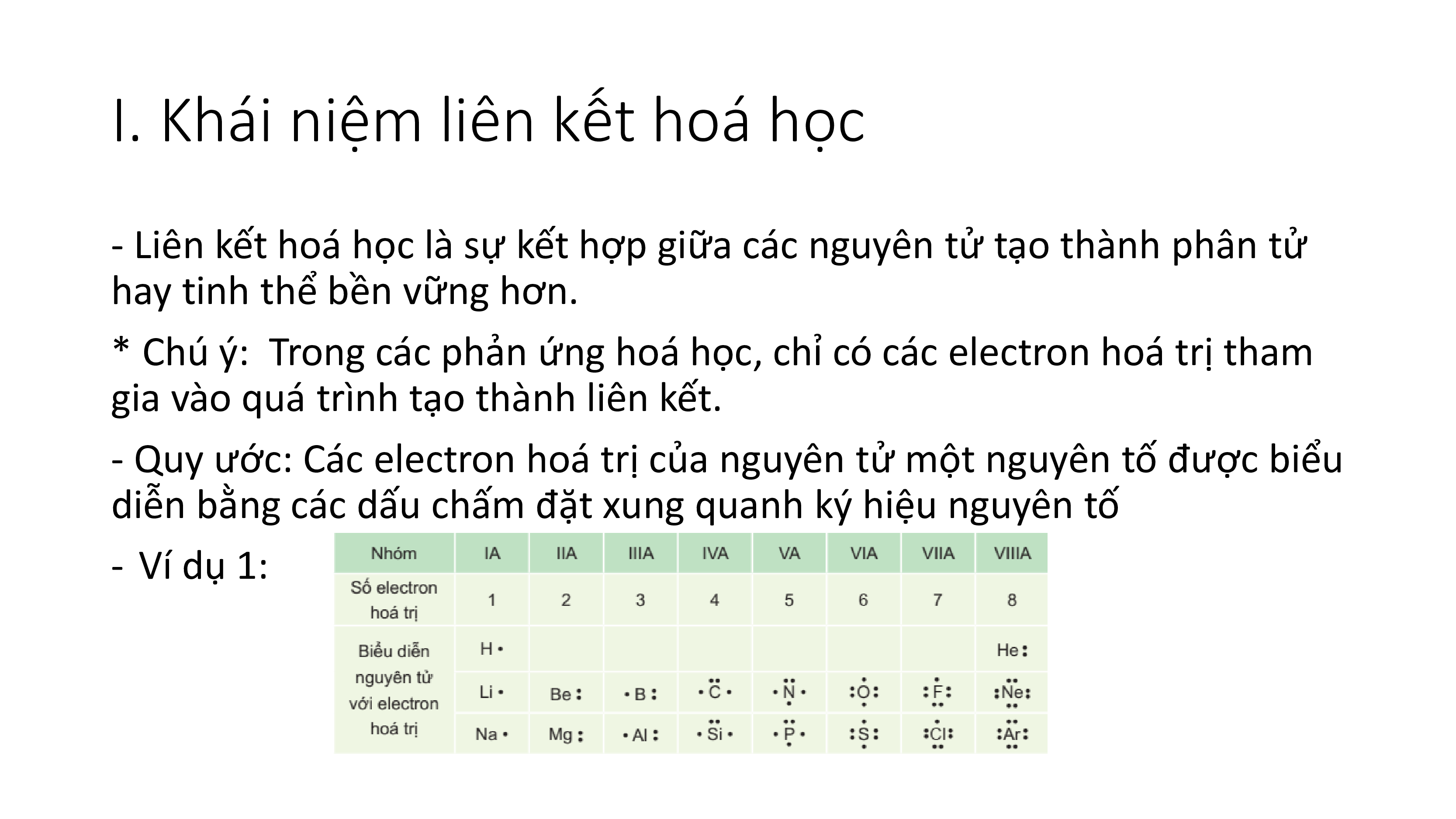 - Liên kết hoá học là sự kết hợp giữa các nguyên tử tạo thành phân tử