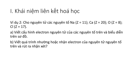 Ví dụ 2: Cho nguyên tử các nguyên tố Na (Z = 11); Ca (Z = 20); O (Z = 8); Cl (Z = 17).