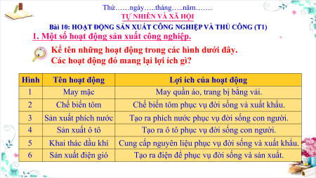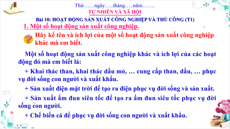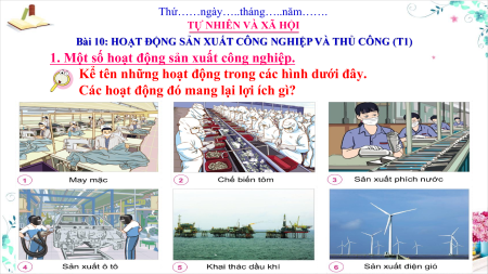 Giáo án Powerpoint Bài 10: Hoạt động sản xuất công nghiệp và thủ công nghiệp Tự nhiên xã hội lớp 3 Cánh diều