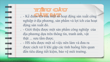 - Giới thiệu được một sản phẩm công nghiệp của ●