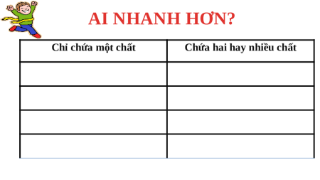 Chứa hai hay nhiều chất AI NHANH HƠN? AI NHANH HƠN? Bạc Khí hydrogen Khí oxygen