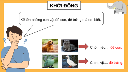 Giáo án Powerpoint Bài 10 Khoa học lớp 5 Cánh diều: Sự sinh sản ở động vật đẻ trứng và động vật đẻ con