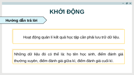 Những dữ liệu đó có thể là: họ tên học sinh, điểm đánh giá