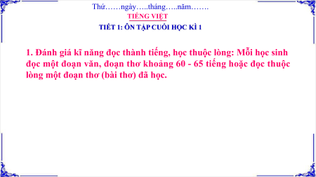 1. Đánh giá kĩ năng đọc thành tiếng, học thuộc lòng: Mỗi học sinh