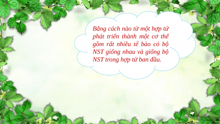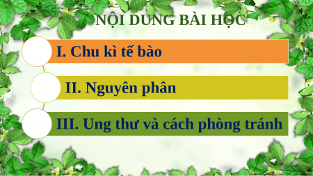 NST trong hợp tử ban đầu. NỘI DUNG BÀI HỌC I. Chu kì tế bào II. Nguyên phân