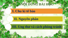III. Ung thư và cách phòng tránh I. Chu kì tế bào: Khái niệm: