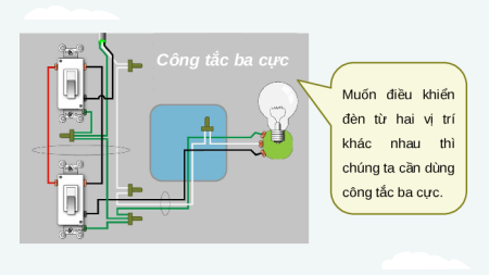 Công tắc ba cực Muốn điều khiển đèn từ hai vị trí khác nhau thì chúng ta cần dùng công tắc ba cực.