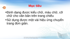 Bài 10. Định dạng, tạo hiệu ứng cho trang chiếu (2 tiết) Mục tiêu