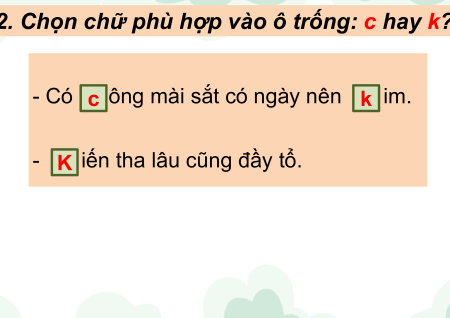 Chọn chữ phù hợp vào ô trống: c hay k
