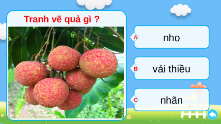 Đội nào nhìu táo hơn giành chiến thắng PLAY Tranh vẽ quả gì ? A nho B vải thiều C nhãn