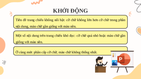 Một số nội dung trên trang chiếu khó đọc: cỡ chữ quá nhỏ hoặc màu chữ gần giống với màu nền.