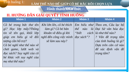 LÀM THẾ NÀO ĐỂ GIÚP CÔ BÉ RẮC RỐI CHỌN LỰA Hình thàn S h ÁC kiếH n ? thức I. ĐỌC TÌNH HUỐNG