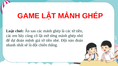 để dự đoán mệnh giá tờ tiền nhé. Đội nào đoán