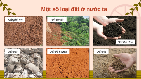 Một số loại đất ở nước ta Đất phù sa Đất feralit Đất thịt đen Đất sét Đất đỏ bazan Đất cát
