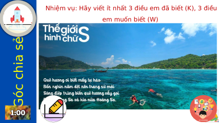 Nhiệm vụ: Hãy viết ít nhất 3 điều em đã biết (K), 3 điều em muốn biết (W)
