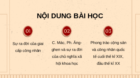 CỦA CHỦ NGHĨA MÁC NỘI DUNG BÀI HỌC Sự ra đời của giai C. Mác, Ph. Ăng- Phong trào cộng sản cấp công nhân ghen và sự ra đời và công nhân quốc của chủ nghĩa xã tế cuối thế kỉ XIX, hội khoa học đầu thế kỉ XX
