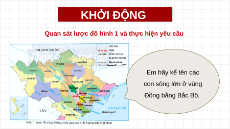 Quan sát lược đồ hình 1 và thực hiện yêu cầu Em hãy kể tên các con sông lớn ở vùng Đồng bằng Bắc Bộ.