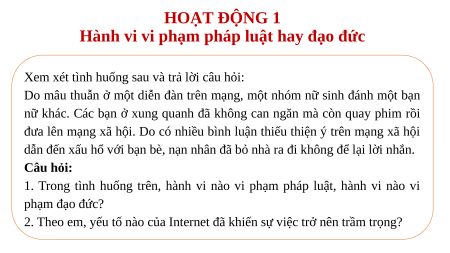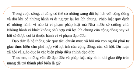 Theo em, những vấn đề đạo đức và pháp luật nảy sinh khi giao tiếp trên