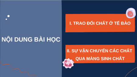 I. TRAO ĐỔI CHẤT Ở TẾ BÀO NỘI DUNG BÀI HỌC