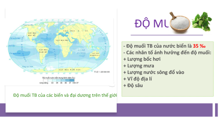 1. Trình bày tính chất của nước biển và đại cạnh nhau sẽ dương? cùng thảo luận + Độ muối + Nhiệt độ 2 phút Hoàn thành phiếu học tập số 1
