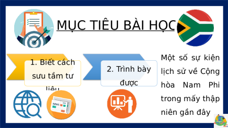 TÌM HIỂU KHÁI QUÁT VỀ CỘNG HÒA NAM PHI MỤC TIÊU BÀI HỌC Một số sự kiện 1. Biết cách