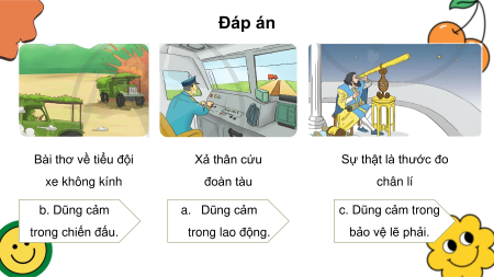 đoán xem bài thơ, câu chuyện nào nói về hành động dũng cảm nào: