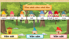 ngữ. Em hãy xếp các chú lùn vào ngôi nhà mang vần