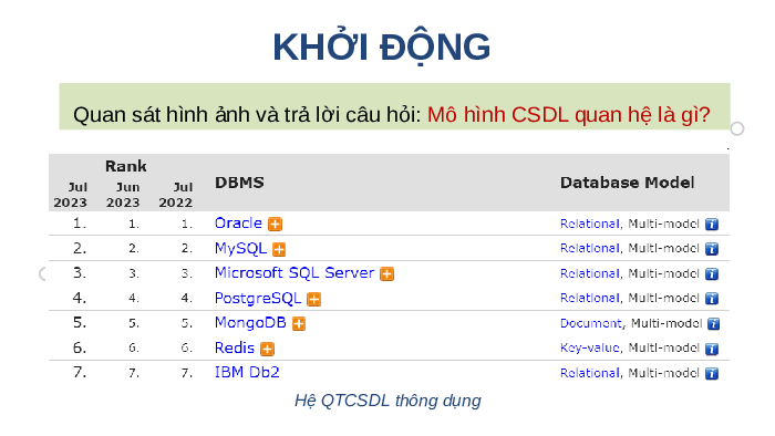Quan sát hình ảnh và trả lời câu hỏi: Mô hình CSDL quan hệ là gì?