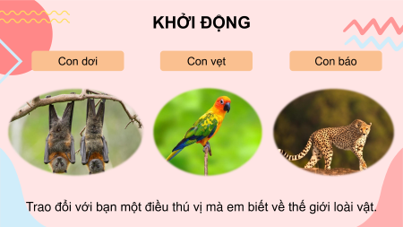 giống tớ thích quan sát, thích chia sẻ với bố. KHỞI ĐỘNG Con dơi Con vẹt Con báo