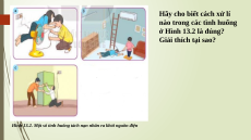 Hãy cho biết cách xử lí nào trong các tình huống ở Hình 13.2 là đúng? Giải thích tại sao?