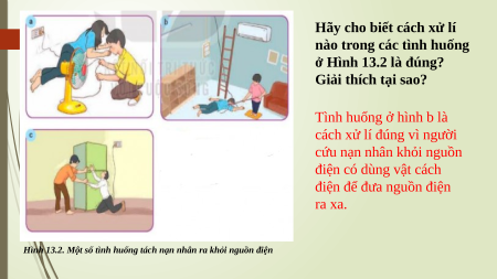 BÀI 13. SƠ CỨU NGƯỜI BỊ TAI NẠN ĐIỆN Em cần phải làm gì khi gặp người bị tai nạn điện trong tình huống ở Hình 13.1?