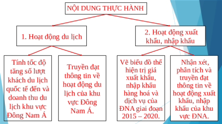 Giáo án Powerpoint Bài 13 Địa lí 11 Cánh diều: Thực hành : Tìm hiểu về hoạt động du lịch và kinh tế đối ngoại của khu vực Đông Nam Á