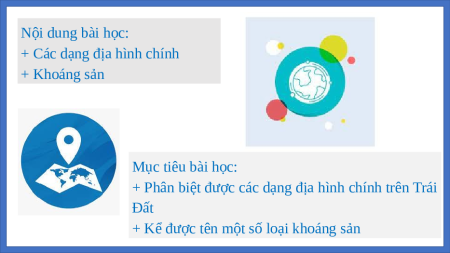 + Các dạng địa hình chính + Khoáng sản Mục tiêu bài học: